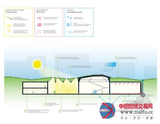 这个2.5公顷的花圃将会成为华沙本地最首要的旅游目标地之一——Lazienki公园的一部门,公园里面有浩繁建于18、19世纪的古典建筑,好比皇家混堂、剧院、水塔等。过往兴建的花圃都是环绕这些汗青建筑而设计的,但此次设计的二十一世纪花圃有了较着的不合。在本次设计中,场馆的设计适应了景不雅设计的标的目标,全部1800平方米的地下展馆仿佛是从连绵起伏的人行道下冒出来一样。场馆的两个出进口别离由景墙和地形开凿出来,与中间的大年夜厅相连接。设计师还操纵人行通道或莳植池为场馆设置了大年夜小不一的窗口,来合理的节制光线,同时也给人们创作发现一种神秘幽静的空气。
