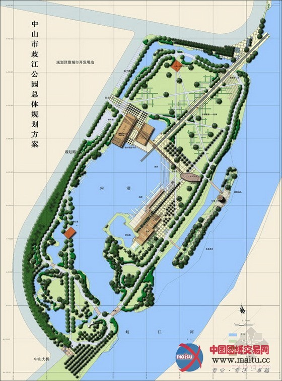 挑战2:如何调和防洪堤的宽度与河岸边老榕树的呵护标题问题。遵循设计要求,岐江需要保持60-80米的宽度以知足水利要求,这就意味着江边的一些老榕树可能就要被砍掉落。可是在此次设计中,为了将古老的榕树保留下来,设计师采取绿岛的编制以河内有河的编制来知足岐江过水断面的要求,既知足了水利要求,也使公园增加了一景———古榕新岛。公园还较好地措置了内湖与外河的关系,将岐江风景引进公园。