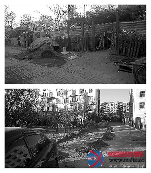刚走进小区北门,就看到大年夜门直对的巷子一侧,聚积着近10米长的泥土堆,这条巷子夹在小区216号楼和311号楼之间。继续向前走,绕至两幢楼的后侧,发现两幢楼的1楼住户阳台外的小花圃,大年夜多都被木板或厚厚的麻袋布围挡起来,只留一个仅供一人经由过程的小门,不时有工人用小推车从院内运出一车车的泥土,泥土是湿的,还有碎砖石同化此中,明显这些是方才从地下挖出来的。