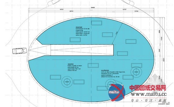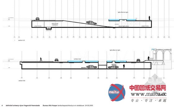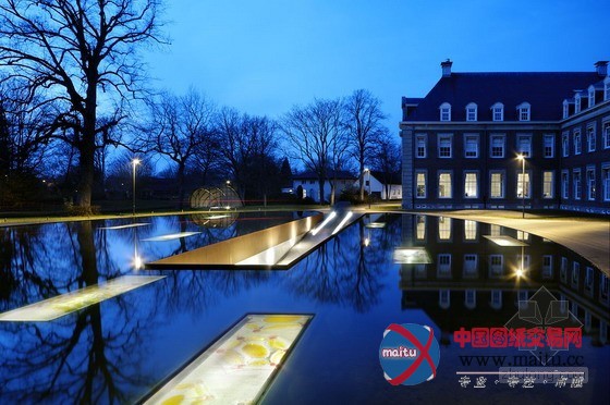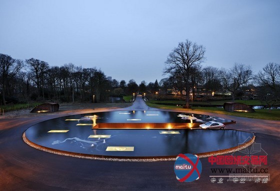 这是一个具有730平方米水面积,水深60厘米的不雅赏池,边缘材料为COR-TEN钢。水池中的采光口使得日光可以或许进进到地下车库。每个采光口被彩色玻璃所笼盖,而每片彩色玻璃都是自力的艺术品。到了夜里,地下车库的光透过采光口向上晖映,透过玻璃面板在水中产生很是奇特的结果。除此以外,颠末特别设计的喷泉间歇开启,它在水面产生的吝啬泡更是增加了水体的活力。