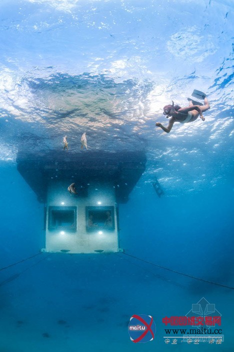 住客被划子送到偏僻的套房,经由过程楼梯进进水下卧室。这里享有360度的视野,可以尽兴不雅赏周围的珊瑚礁和花团锦簇的海鱼。度假村业主暗示:“一些珊瑚鱼在客房周围假寓,以远离捕食者,获得呵护。例如,三条蝙蝠鱼和一条叫尼克的管口鱼,常常在周围游动,有时仿佛还在向内窥测。”珊瑚将沿着外壁发展,而窗户下设置的聚光灯也将吸引鱿鱼和彩色的海蛞蝓接近。该项目由瑞典公司延贝里水下酒店设计和扶植,灵感源自瑞典梅拉伦湖的漂浮建筑Utter Inn。此漂浮建筑仿造自传统的斯堪的纳维亚房屋。在布局上,该项目也是水上部门由原木包裹。这部门空间包含起居室和浴室举措措施。而屋顶平台可用来做日光浴或不雅星。