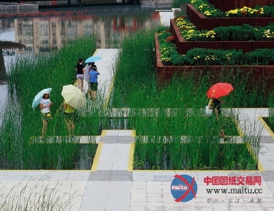天津廊桥天井位于天津的北部海岸,由一个个自力设计的花圃组合而成,构成了一个L型的线性开放空间,成为城市和桥园湿地公园之间的过渡带。这个基地本来是一块严重污染的烧毁地,垃圾遍地、充满着贫平易近窟和姑且建筑。湿地公园和廊桥天井同时建成,旨在改良本地的水文和泥土前提,创作发现一个可以鼓吹本地文化及美好环境的场合,并为周边十余万社区居平易近供给一个文娱休闲的场地。