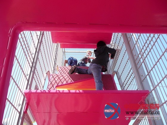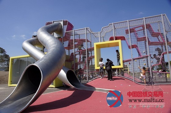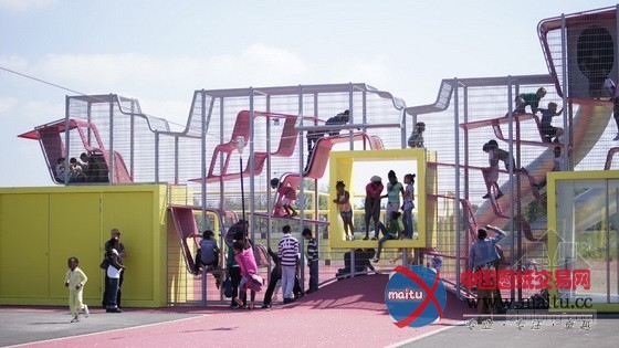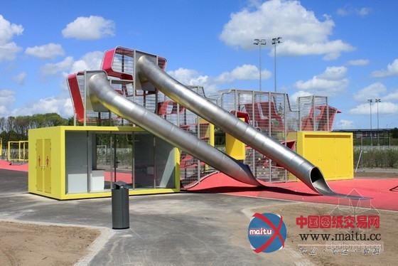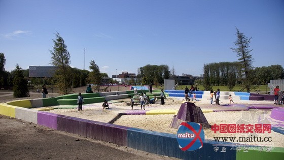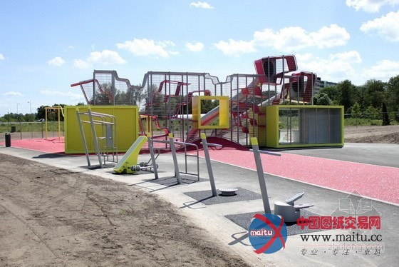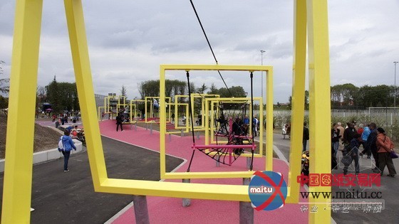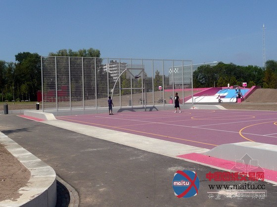 体育和游戏广场位于公园中间位置,首要线路是一个环形的人行道和自行车公园游线。游戏广场包含了若干要素:一个球场、一个游戏带、“攀爬王”、一个滑板公园和一个由水和沙子构成的游戏区。“攀爬王”的布局是一个多层次的游戏墙,包含了游戏场治理室和两个公共厕所举措措施。游戏带位于两个连缀起伏长满了树木的绿色山丘脚下。在山顶上,隐躲着一个由两个连接池构成的滑板公园。人们经由过程堤岸和楼梯下到地面,来到另外一座山上,可以找到由水和沙子构成的游戏区——1个操纵沙箱和水流为年幼的孩子供给丰硕多彩景不雅的场合。