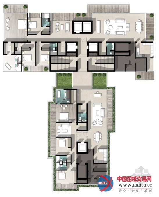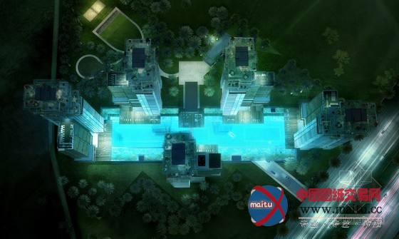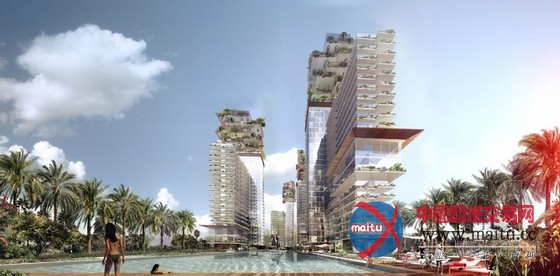 在每个布局的最高点,“绿色云朵”状的大年夜厦延长部门包管了所有住户可以享用屋顶空间。公寓单位有私家电梯直接连接这些种有花草和有机蔬菜的空中平台。遮阴区域包管了住户远离印度本地固有的骄阳直射,犹如法度城堡的茶亭。在印度,豪华的双高度公寓都覆有保温天然材料,如大年夜理石和原木。别的,还设置了一个区域专门供佛,反应出本地的宗教文化。宽阔的开放式广场,连接3栋大年夜厦的大年夜堂,包含一个巨大年夜的水池。水池接近公共泳池的区域,种有芦苇和荷花。