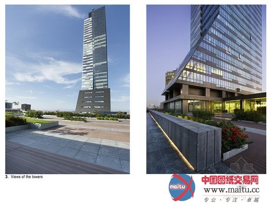 项目内的两座建筑高塔给人一种举高的景不雅感触感染,而这一景不雅感触感染被花圃几何式的构图进一步加强。高塔中间的花圃部门设计包含了办公区域和栖身区域,花圃部门没有设置浇灌系统,为的是可以构成一个可延续的花圃景不雅(操纵雨水进行浇灌)。
