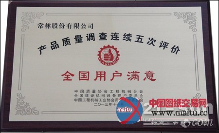 常林股分压路机产品持续第五次获得“全国用户知足产品”称号