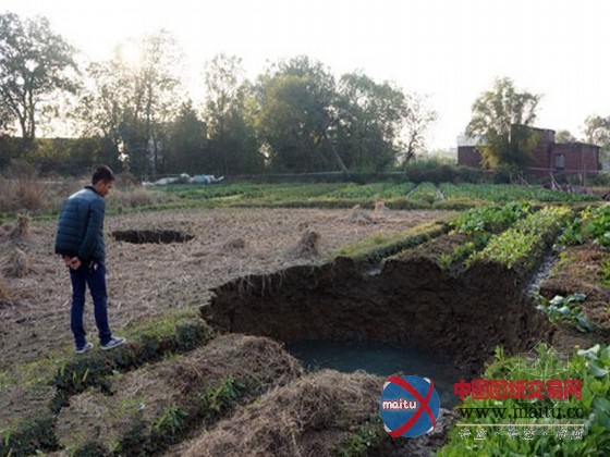 受损楼房前方是一片坦荡的农田,面积不到两亩的地步中间,集中漫衍着6个因地质塌陷而构成的积水大年夜坑,最大年夜的坑洞直径有5米摆布,深度不明。