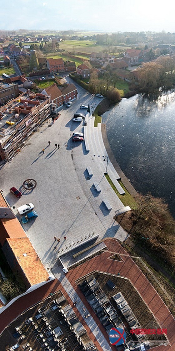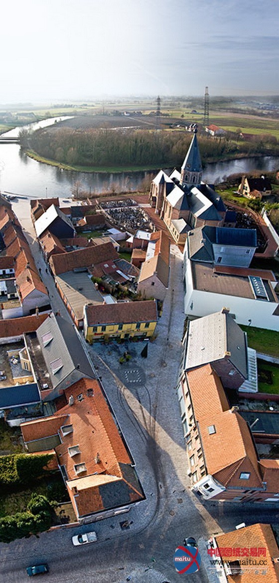 Machelen是一座风光如画的村落,村落及此中间广场和教堂沿着古老而曲折的Lys河岸布局,教堂周围的河畔是村落公共空间的经济勾当中间,船只在这里进行商业勾当,人来人往,毂击肩摩。20世纪下半叶,跟着制造业和交通运输业的终止,村落垂垂掉往了与河道的联系,变得特别恬静,河边的中间广场成了萧瑟的泊车场,村落中间也逐步转向骨干道。