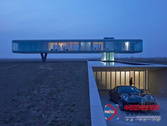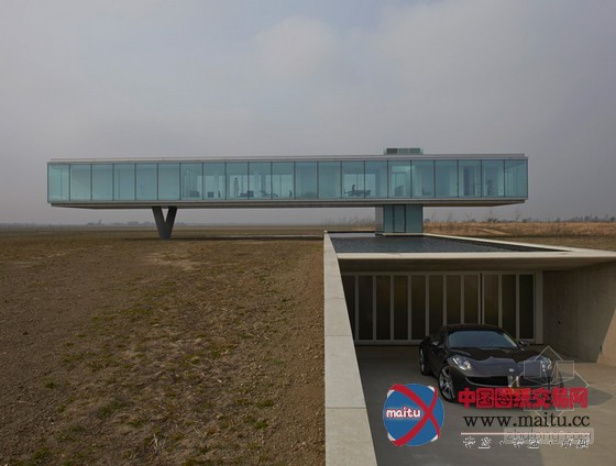 设计大旨在于创作发现一个简约而极具吸引力的建筑布局,达到完全自立,本身加热水资本,本身收受领受废料。2个堆叠的立方体构成了全部设计,一个位于地下,另外一个为浮于景不雅之上的玻璃盒状体量。建筑的进口位于地基层,具有泊车场、蕴躲室、一个浴室和一个工作室。地面之上,开放式布局的糊口空间,景不雅视野坦荡,其内厨房、卧室和浴室自力漫衍。为了确保全年环境舒适,出格的“气候式立面”由尽缘玻璃外层和反射阳光的织物内层构成。织物可以向下移动,构成气腔,让建筑内的空气经由过程一个被动通风系统轮回操纵。别的,还出格设计了一个炉子煮热水,其电力来自屋顶太阳能板和出格建造的风车。
