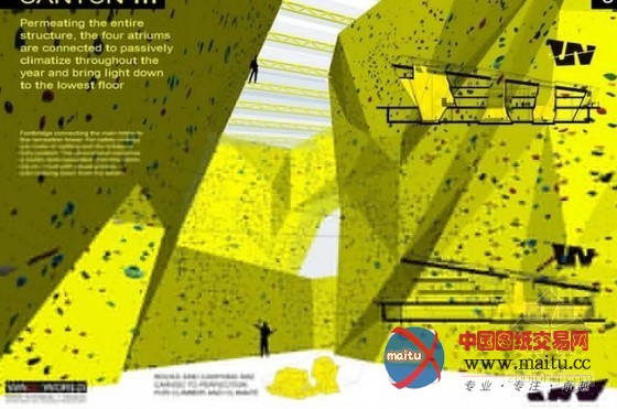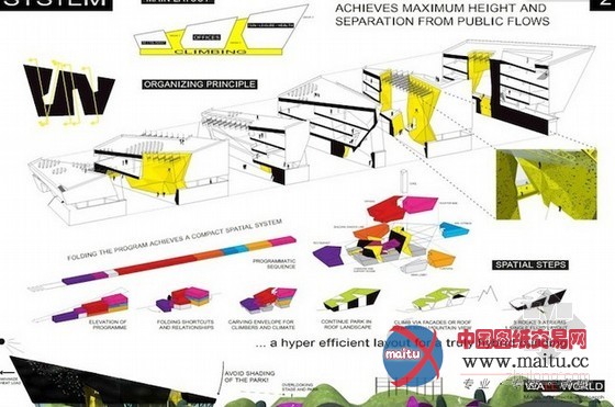 这个名为“对撞机勾当中间”项目位于索菲亚,将成为该城市第一个环保性同化利用中间,其内包含休闲和活动空间。为了使得场地内的不合功能得以慎密连接、空间系统加倍紧凑,设计团队奇妙地在建筑的褶皱区域插进一系列动态的明黄色攀爬式天井,创作发现出一种持续攀爬的感触感染。折叠的“之”字形“空间骨架”,如峡谷一般。当建筑的坡体向上时,每个攀爬的部门都必需挑战难度和高度,从初始的区域达到专业的部门。巨大年夜的攀爬空地,使得天然采光可以深进建筑;此中一个天井将成双倍高度,夏季作为温室利用。
