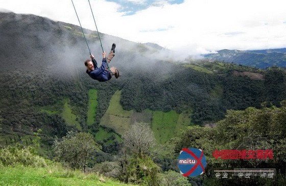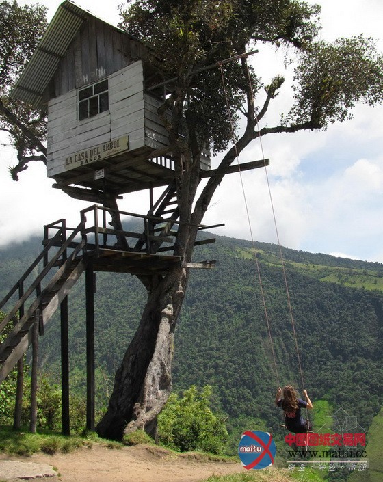 对英勇的冒险者来讲,厄瓜多尔巴尼奥斯城供给了一个很好的举措措施,它可让你起飞于通谷瓦拉火山之上,扭捏活着界绝顶。这个景不雅举措措施是一个隐躲在树中的木质小屋。“树屋”有两根连着秋千座椅的绳子,冒险者们可以在海拔2660m的高空荡秋千,感触感染飞翔在地球边缘的奇特风景。
