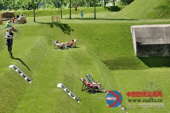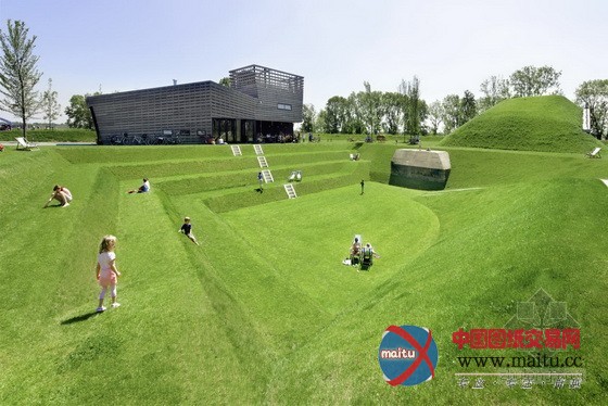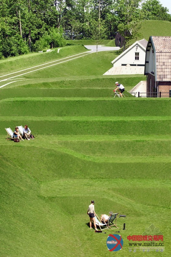 设计的灵感来自于场地内丰硕的汗青信息,可以将该灵感理解为一个巨大年夜的草坪雕塑场地,连络了新旧汗青元素,如战壕掩体、防弹建筑物和一个露天剧场。该项目将一些本土的处所性勾当组织起来,是以构成了一种新型的公共空间,并且有潜力成为“新荷兰水线”上最具吸引力的景不雅之一。