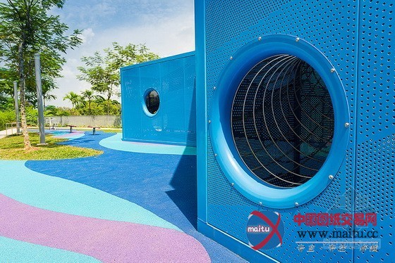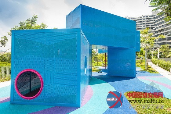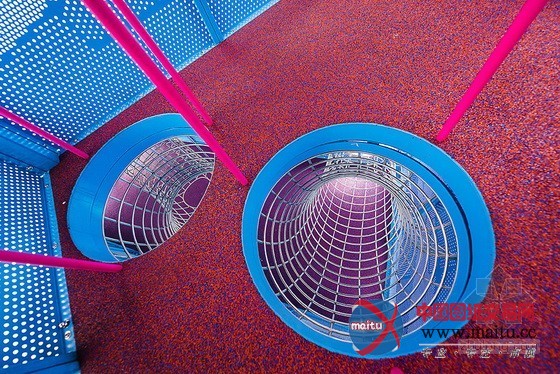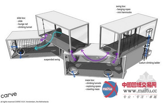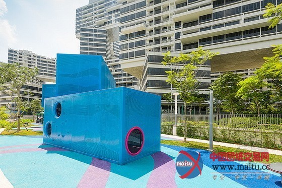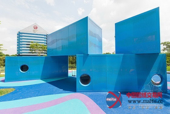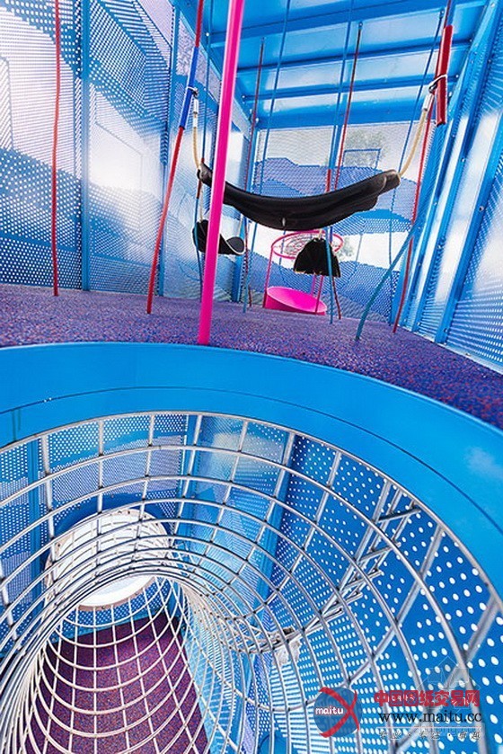 在比来新建完成的一个天井中,Carve设计团队打造了一个与周边环境“无缝跟尾”的活动场。活动场上有四个集装箱模样的游戏设备交叉叠加在一路,小孩子可以在里面爬行与滑动。各类游戏功能串连起来便构成一种迷宫一样的探险线路,颇受孩子们的喜好。不娘家长们也不消担忧小伴侣在里面玩耍的时辰会碰着不测危险,因为这组游乐举措措施内部都颠末端细心的设计。游乐举措措施的概况乃至有良多凿穿的浮泛,以便给举措措施内部创作发现风凉透气的环境。