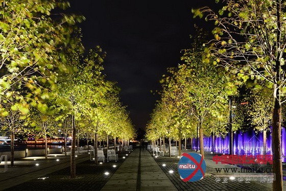 为了使得公园更具吸引力,设计师充分考虑了夜间照明的需要,侧重设计了某些景不雅节点处的照明。