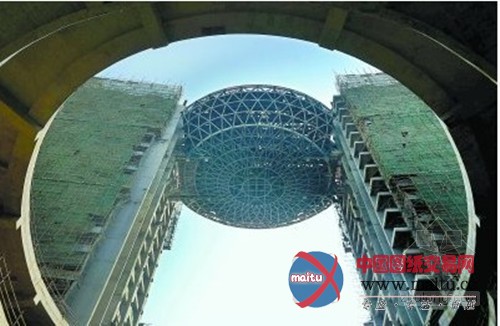 这个空中椭球体钢连廊似一个巨型“鸟巢”,是武汉国际博览中间洲际酒店顶部18层——20层的中间连接体,内部由两层钢椼架布局构成,高21.4米,长45米,宽40米,总重量约1500吨,晋升高度达47米。