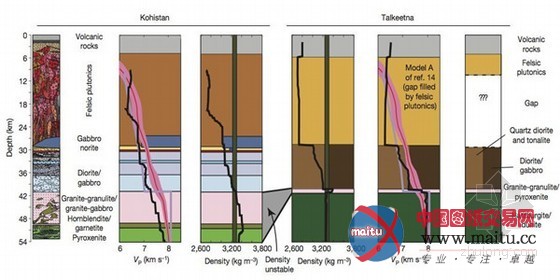 巴基斯坦岩石近似于现代弧形列岛,它们不存在构成莫荷界面所需的锋利的密度反差。这些岩石层揭露了具有类似密度的密集延续的岩石截面,例如辉长岩。但在阿拉斯加,这些岩石是缺掉的。相反,在莫荷界面所处的深处,岩石层之间存在较着的密度骤增,这些岩石主如果斜辉橄榄岩和纯橄榄岩,而非辉长岩。亚古茨觉得缺掉的密集岩石供给了在火山岛弧产闹事务的线索。