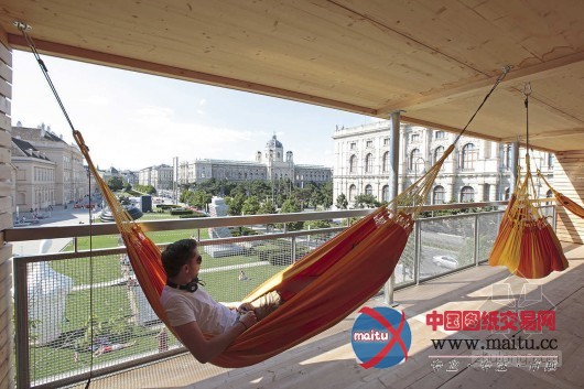 5. Heri & Salli事务所设计的蝙蝠屋这个奥地利项目,既是垂直公共空间,又是用于憩息的城市绿洲。木材在此被用来创作发现台阶和平台,通向一系列吊床。进进这里的人城市被“晾起来”。