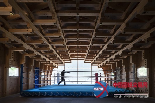6. FT建筑师事务所设计的射箭馆与拳击俱乐部这个位于日本东京西部日本工学院的项目,包含两座木布局建筑。设计团队在射击馆利用了凡是建造家具的小木材完成布局,在拳击馆利用了略微受损的稍大年夜块木材进行布局建筑。这些木材只在水安然安静垂直标的目标上订交,表现呈现代主义的纯粹性。