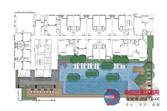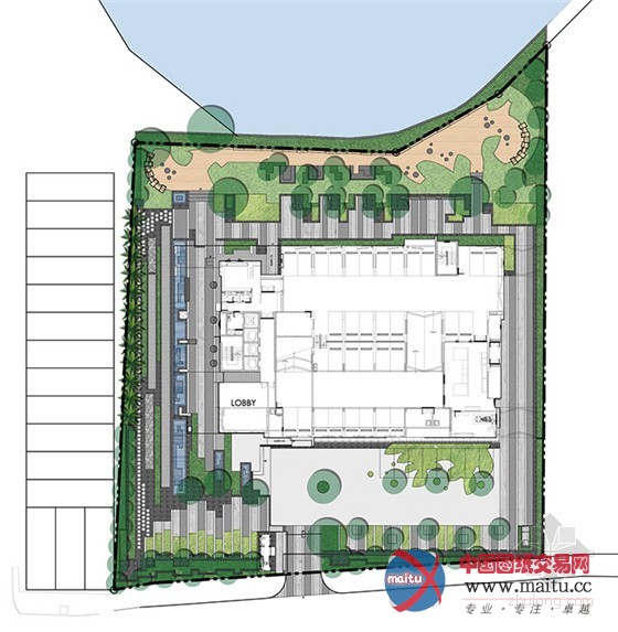公寓周边有良多购物商场,每天都面对着闹热热烈繁华的街道,而厥后方则是安好的运河和传统平易近居大年夜院。因为用地密度较高,项目需要在周围留出6米的消防通道和一些地面泊车场,这意味着地面层需要有较多的硬质展装。而公寓楼的外饰面会造成城市热岛效应和反射炫光。是以设计师在地面和公寓内部需尽可能增加一些绿色空间。