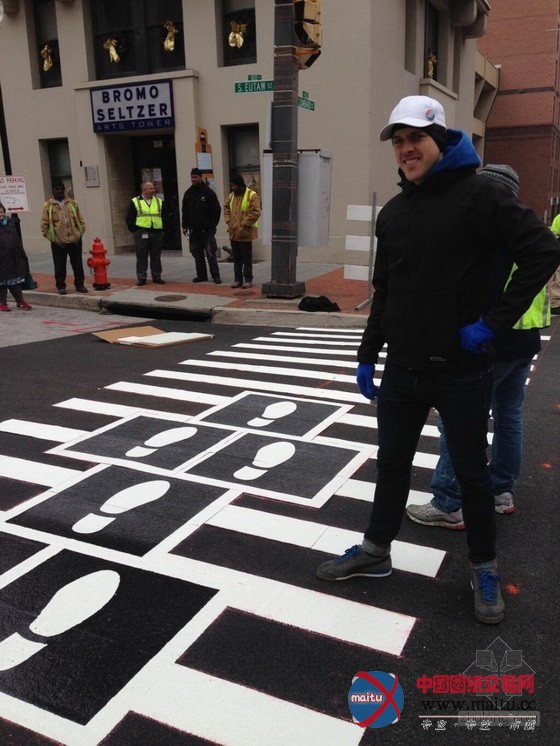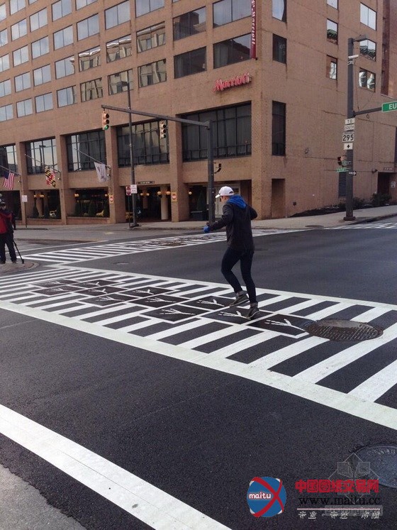 为了增加公共空间的艺术性,马里兰州的巴尔迪摩市在城市道路的各类交叉路口,进行了一些艺术性的测验测验。到今朝为止,已完成了两个十字路口的设计。艺术家Paul Bertholet 设计了一个看起来像巨大年夜的拉链启齿的人行横道,Graham Coreil-Allen设计了一个很大年夜的像跳房子游戏的人行横道。