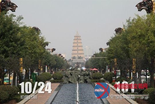 有网友在微博上晒出了一张大年夜雁塔的对比图,在10月24日的照片中,大年夜雁塔稳稳立在图片中间,塔背后的建筑也能清晰可见;而在昨天拍的照片中,图片中只剩下了两排树木,比大年夜雁塔的影子都看不到了。
