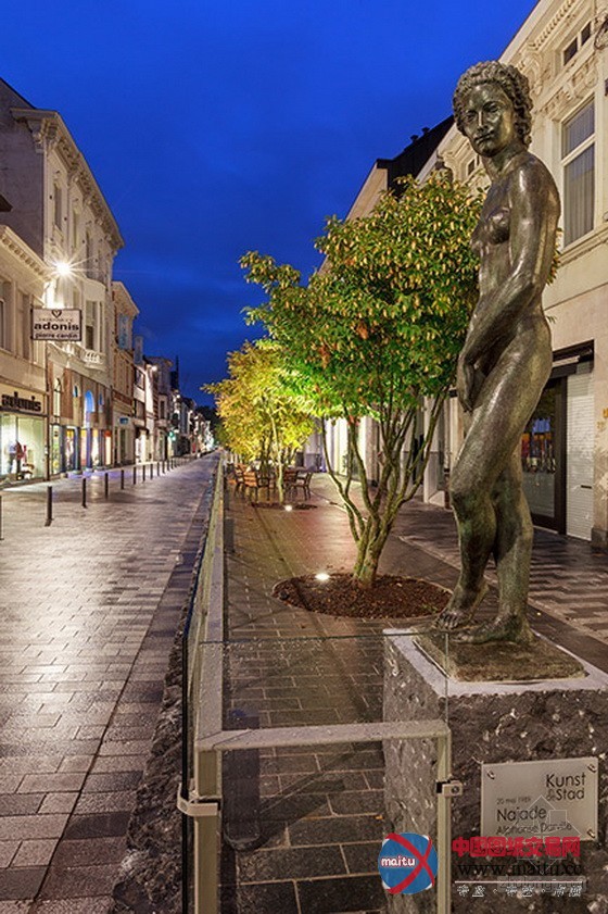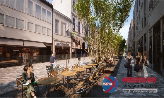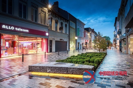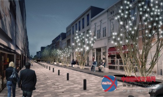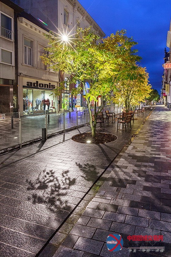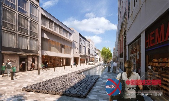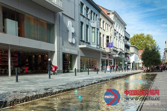 此次街道景不雅设计的定位是将Stationsstraat改革成为城市中间购物区的中间骨干,使这条600米长14米宽的街道成为城市绿色购物廊道。街道的展地是采取精心遴选的四色花岗岩同化材质与青砖搭配,利用者会有较好的舒适度。