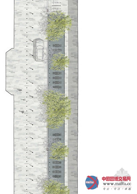 这个看似简单的功能设计里包含了泊车区、装卸区、绿化区、广场和台阶、街道举措措施等。三个水景举措措施同样成了车道主线的一部门。