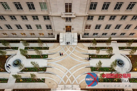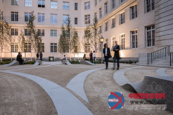这些由再生混凝土制成的地表雕塑,给人们一种地面扭曲上升的印象,在天井内成立了一个三维交叉的景不雅情势并为人们供给枯坐歇息的处所。全部院子的设计还很是重视绿色可延续成长手艺的利用,耗水量很是低。院子的两侧各类有16棵白桦树,在活跃的地面和建筑物的白色砖墙之间成立了垂直维度。总的来讲,此次优良的景不雅设计不但为这一古老的场地带来了景不雅活力,同时也对汗青建筑的呵护做出供献。