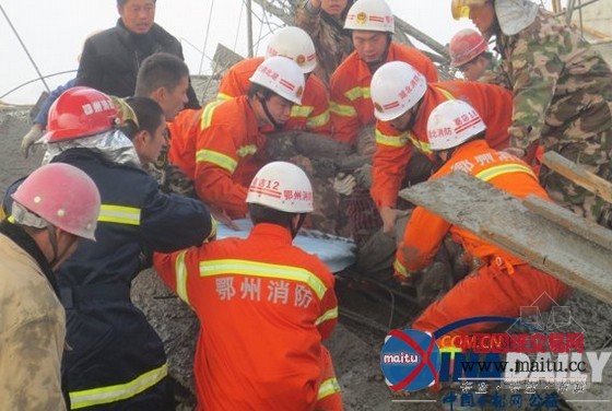 现场施工人员称,11时46分,浇灌天棚突然产生坍塌,那时共有6人在上面施工,3人掉落落被埋。