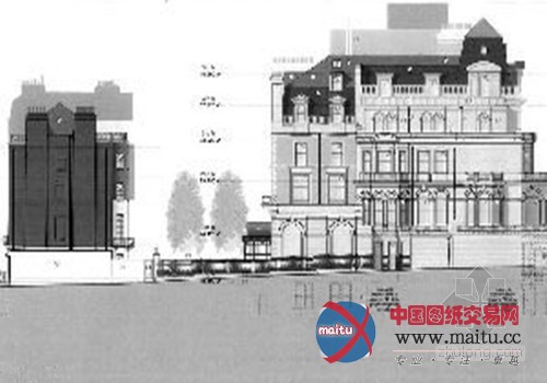 摆布两图为两栋相距55米的别墅,中图为高德威兴建地道打通这两栋老宅子的设计图
