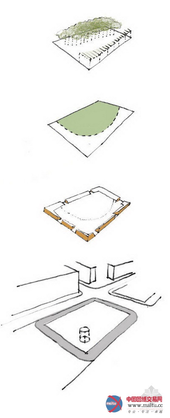 获奖项目标主题是设计一个供人们静态休闲和市平易近集会的新都会公园。公园的主题“每天活动场”就意味着这个新绿地是奥林匹克精力的传承,同时也是设计概念的表述。共由3个元素构成:一个大年夜型中间开放空间,围墙和座椅,和大年夜型的遮荫举措措施,它是由一个建成的遮阳篷和高大年夜树冠的乔木构成。