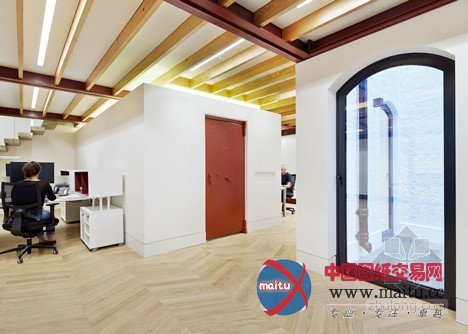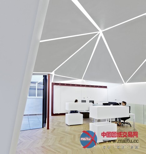 基地位于伦敦布鲁姆伯利的棒约翰大年夜街,由两栋旧宅构成。建筑师在建筑后部安设了一个新的两层布局的建筑物来创作发现一个额外的空间,来连通现有的工作区。建筑师说道:“业主希看可以或许打破阳台的限制空间,让大年夜家可以或许更等闲的交换,与此同时在两个部门之间保留必然的分界。我们的方案是使阳台变得更宽阔,并且在狭小的空间内引进一个全新的建筑物为新旧空间创作发现一个戏剧性的过渡。”金属屋顶经由过程三角形区域的角度起伏为室内的天花创作发现不合的高度,以组织旧建筑的不合部门。“我们采取建筑周围现有高度的关头数据,经由过程其来创作发现一个与众不合的三角情势的屋顶。”在内部,隐躲式照明凸显了每个平面的边缘,而三角形的天窗室内空间带来了天然采光。一个悬臂式木质楼梯通向基层,木制天花被透露在外。这层有一个会议室,据有了之前被用作地下室的桶状砖布局建筑物的位置。玻璃门有助于引进日光,并且可以连接一些小天井,别的,每层都利用了橡木地板。