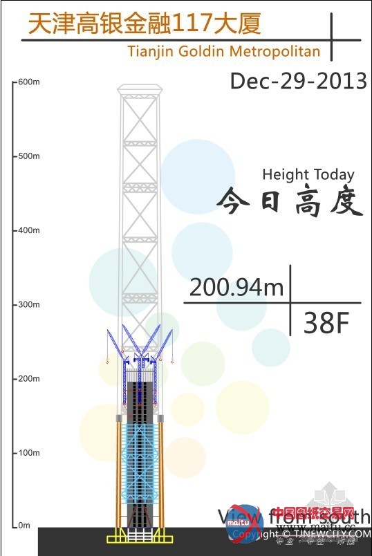 2014年,117大年夜厦施工速度将进一步加快,最快可达三天一个布局层的施工速度,估计来岁下半年,117大年夜厦主塔楼将超出由中建三局在1991年建成的总高度为415.2米的天津广播电视塔,届时117大年夜厦将成为天津城市的制高点。