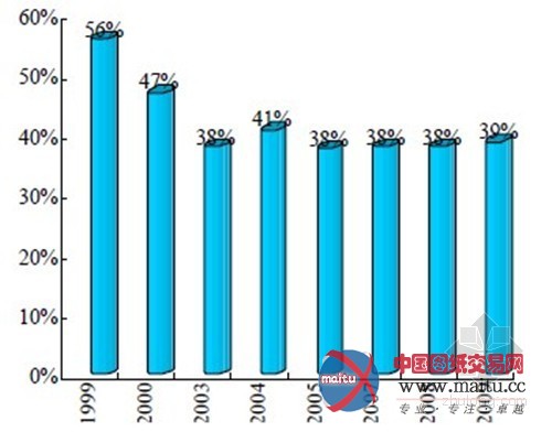 美国房屋钢布局中商业占比最高,如商场办公大年夜楼等占比达48%;其次是制造业的厂房、仓库,占比25%;体育馆、藏书楼、火车站等公共建筑占比18%。从钢布局用量尽对值看,近几年改变不大年夜。2009年美国经济危机期间,建筑业蒙受重大年夜冲击,钢布局建筑总量大年夜幅下滑。但因为整体建筑中公共建筑占比上升,09年钢布局建筑占低层建筑产值的比例反而小幅上升至39%。