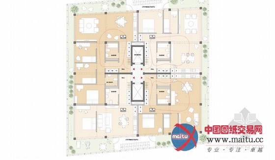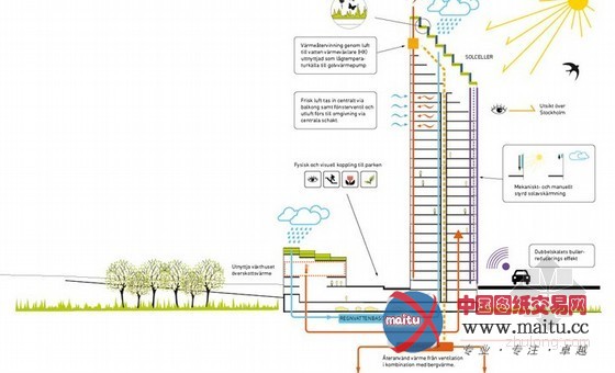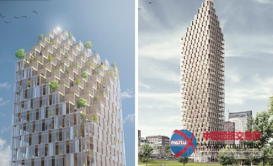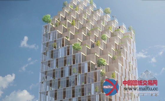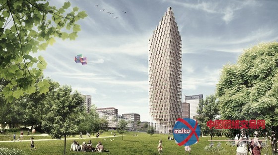 设计作品是一个34层高的太阳能室第,建筑几近是木质的,包含了一个混凝土核心筒和一个屋顶露台。提到木质摩天楼,人们第一个想到的就是消防标题问题,可是建筑师觉得木头要比其他建材更耐火,因为木头的含水率是15%,在其燃烧起来之前,这些水分会被蒸发掉落,从而可以或许呵护核心筒。Lloyd Alter坚称木头比混凝土更能放火。建筑师一向热中于建造高层木质大年夜楼,因为这是一种轻质且可更新的材料,并且可以或许按照建筑本身的重量负重。在C.F. Møller设计的这座大年夜楼中,柱子和梁都是用固体木材制成的,室内的墙壁、天花和窗框一样是木质的,这使得室内空间看起来更像是小板屋。每幢公寓都设有玻璃笼盖的走廊;屋顶则被切割成菱形,并装有太阳能板。