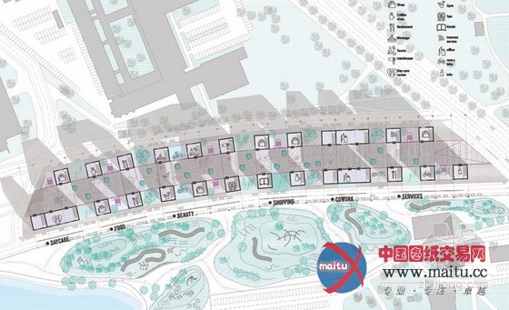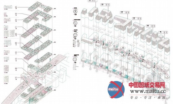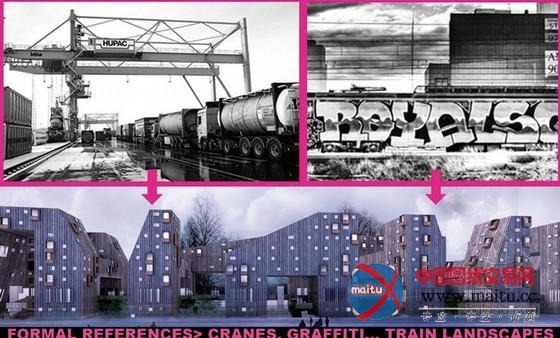 建筑位于一条现存的铁路轨道上,对这块被华侈的危险空间进行了从头操纵。人行天桥直接从铁线路上方穿过,以期可以或许创作发现一个多样的稠密市政设计,来使全部地区获得改良,包含一个户外公园。几何外形的大年夜楼基于多样的文化和交通标记的理念设计,例如港口和车站到处可见的起重机、涂鸦等。建筑的体量是按照周围的环境和合理有效的房屋漫衍来设计的,包含一条沿桥而建的商业街。经由过程这座建造在铁路上的建筑可以或许促进居平易近之间的互动,以期对城市及其孤登时区可以或许从头联系起来。