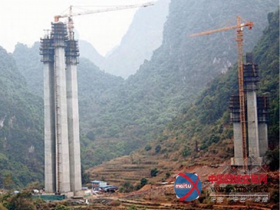 因为最高主墩位于地下暗河正上方,开工初期冲孔桩施工时,泥浆常常沿裂隙渗漏至地下暗河,严重污染了水源,对风光区带来了相昔时夜的负面影响。为此,施工方改进了工艺,最大年夜程度确保了施工安然,并进步了工程质量,缩短了扶植工期。