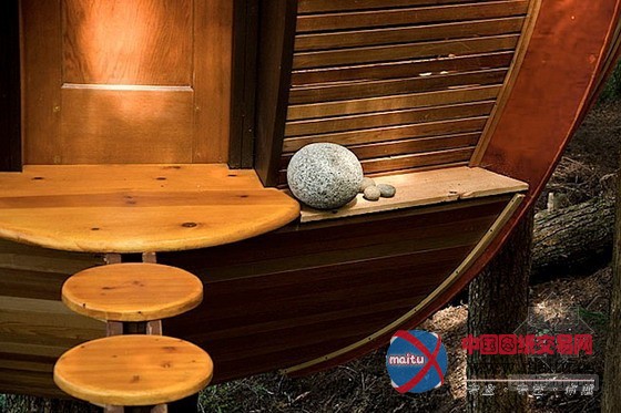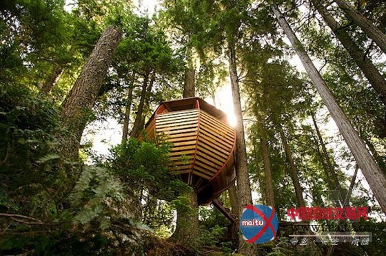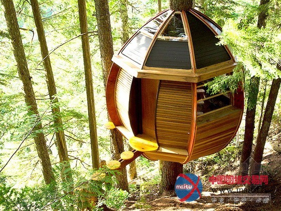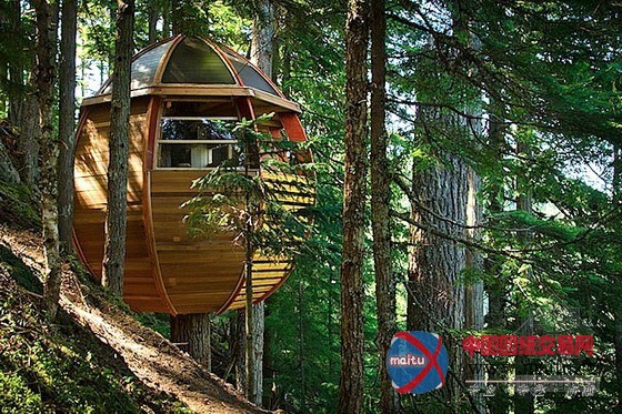 加拿大年夜惠斯勒丛林的Hemloft蛋形树屋有着奇特的布景故事,它来自一个破裂的胡想,设计师Joel Allen 本来在一家软件公司上班,直到该公司破产,26岁的Joel Allen决定退休做一个木工。他结识了一名白叟John,他们在丛林里流荡,直到他开端熟谙这些树木。后来,Joel筹算和John一路建造这个树屋,但同其他树屋不合的是,这个树屋是用天然环境里的木材搭建的百叶状树房,看上往让人赏心好看。除外型十分奇特,吸引眼球以外,有趣的是,这个板屋其实是一个背章建筑,并没有颠末申报审批。