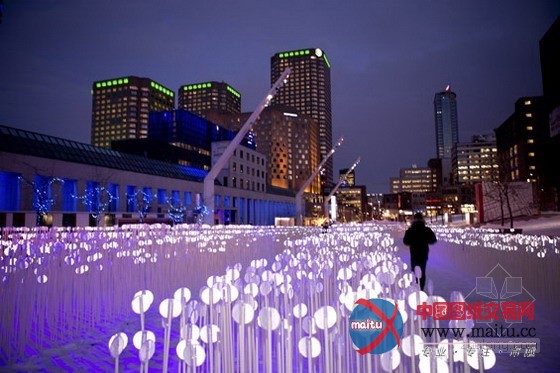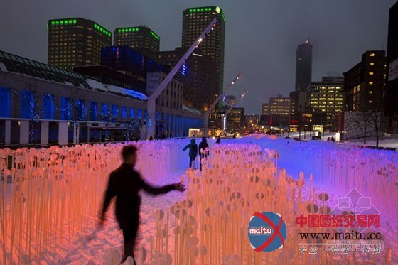 当我们看到全部作品时,仿佛看到一个令人回味的村落稻田在轻风中摇摆,即便在冬季行未到临的时辰,也使得我们放佛感触感染到了夏天的味道。28500只茎杆,在冬季的风中摇摆,白色的反光仿佛是这个节日在大年夜地的投影。在城市的心脏地带,这些形似小麦的茎杆伴着悦耳的音乐,放佛在聘请路人加进“步队”,轻舞安步。