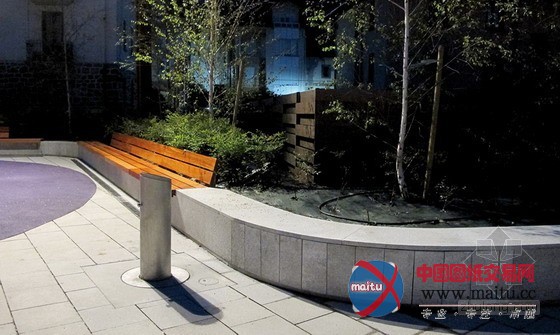 并且,为避免车辆进侵行人区域,该公园还利用不锈钢桩代替了步石或路缘石。