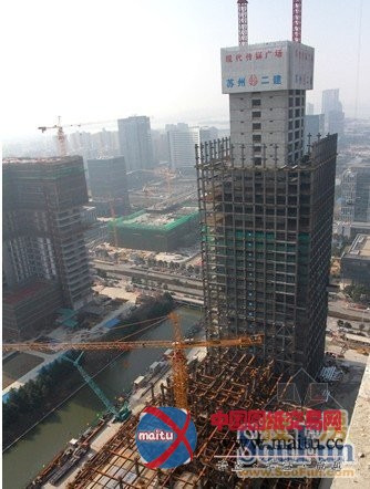 苏州现代传媒广场酒店楼封顶 预计2015年初完工