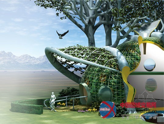 为了建造树的框架,建筑师操纵了“编制”的手法,这类手法遍及应用在了园艺中,指导树木纸条的发展标的目标来制造拱门。榆树、槲树、山茱萸等树木做撑持,葡萄枝编制成格子来做墙和屋顶。房子的内墙和房顶材料则是黏土和稻草以达到真实的生态***。作为框架和外墙的植物供给了外界环境和生物和房屋交换的场合。设计师意图揭示的是,用活的生物做建筑材料可以打造对生态不含涓滴粉碎性的“超等建筑”。
