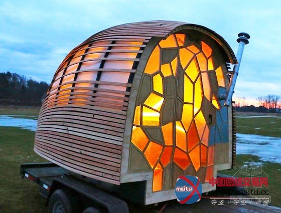 这个自给自足的移动房屋利用环保材料制成,造价仅2000美元。长达一学期的设计和建造过程中,布朗传授的16个学生分成了不合小组别离设计房屋的水、点、热系统和外壳。“可移动的糊口编制代表着新的美国梦,特别在这帮学生中间,”布朗说。“他们对毕业以后的房租和按揭糊口不是那么感欢愉爱好。低成本低能耗的私家空间更对他们的胃口。”房屋的框架和窗户是用本地的木材和石板做的,用剩下的材料让学生们用来做了个有机厕所和供洗澡和厨房利用的雨水汇集系统。这些轻型的装配可以轻松安装和拆卸,5*8的拖车就可以把它拖走。