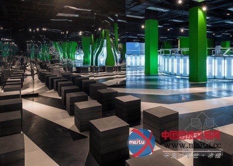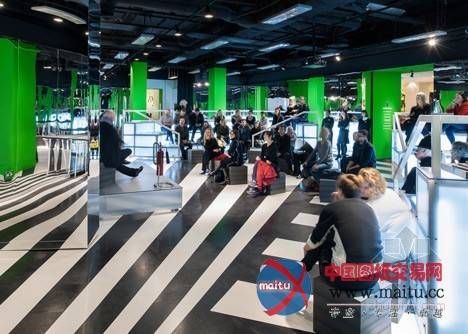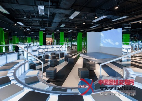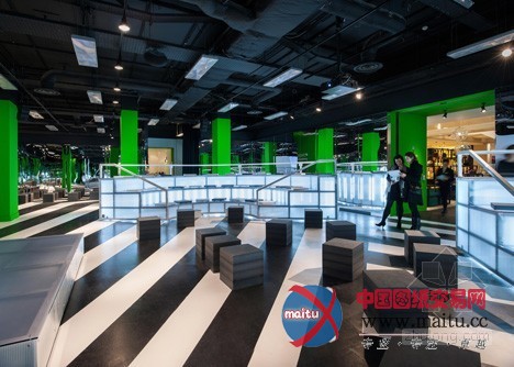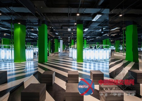 摘要:Rem Koolhaas的OMA在伦敦塞尔福里奇百货公司地下室设计建造了一个勾当空间,里面有圆形剧场,鲜绿色的柱子和单色条纹地板。