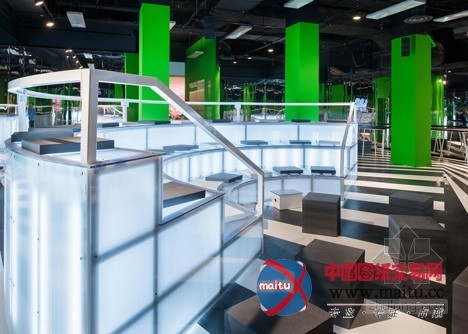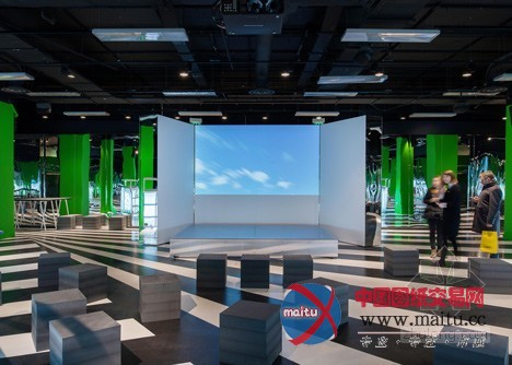 地面是欧普气焰的吵嘴相间条纹。柱子上的鲜绿色大年夜多用在录制新闻或气候预告的布景。周围的墙上布满镜子,使鸿沟变得恍惚不清。遍及英国塞尔福里奇百货商场里有三种胡想秀,库哈斯设计的会堂是此中之一。这三种胡想秀城市每天进行不合的胡想勾当,为了“进一步开辟大年夜家的思惟”。牛津街的塞尔福里奇百货商场里还有一家胡想商铺,此中有超实际主义的表,并且以数字影片的情势揭示扎哈•哈德迪设计的一个游艇。