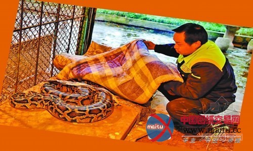工作人员给蟒蛇盖上了被子
