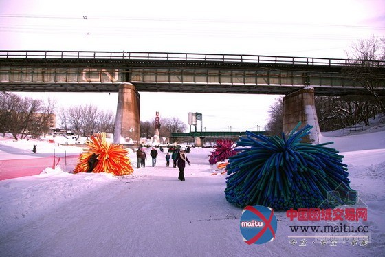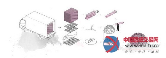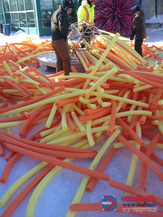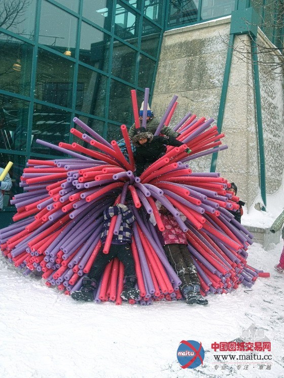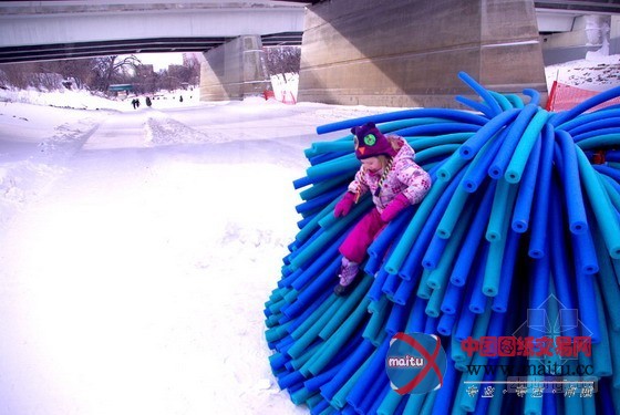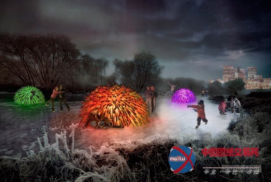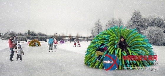 多伦多设计团队“原始的设计”(Raw Design)博得了2014年“变热的小屋”(Warming Huts)设计比赛,他们的设计作品称为nuzzles。此次比赛的比赛场地位于加拿大年夜温尼伯的阿希尼伯恩河(Assiniboine River)沿岸,没有具体的主题要求,是以设计师可以按照本身的设法设定主题,可是设计作品的高度不成以高于场地内现存的植物,并且每个团队必需包含一个艺术家。 此次获奖设计的理念借鉴了动物外相给人的触觉,希看给人以“密切”的感触感染,作品可以再底部点燃进行加热。全部作品的核心位置有一个铝管组合成的框架,外部拼接不合色彩橡胶制成的软管,可以供旅客歇息玩乐,作品的色彩或艳丽或热和,加上它柔嫩的质感,可以给人一种和顺的触觉。