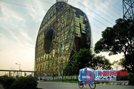 位于芳村南部珠江北岸这栋环形的金色大年夜厦,近日因10万元征名,又一次引来网上热议。因为设计外形出格,施工复杂,建筑落成时候须至11月份,比原打算足足推迟了10个月。这一建筑从开建起便争议不竭,但无故障它成为芳村南部的新地标。