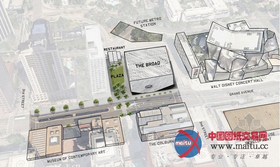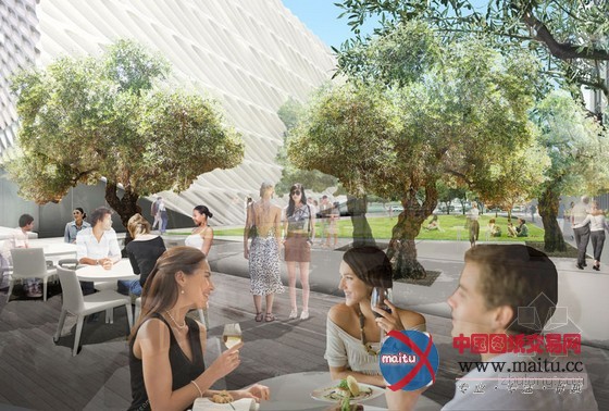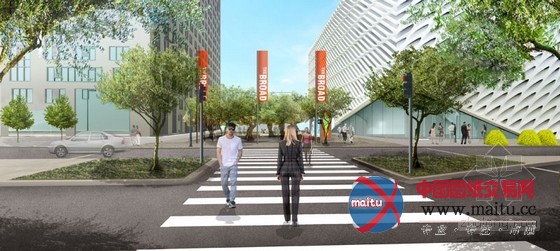 新的人行道将连接周边地区的当代艺术画廊。除公共广场,领衔参不雅老板bill chait将开辟一个新餐厅。hood design和 DS + R设计的景不雅包含了100年的橄榄树,使广场和道路之间有一个暗影缓冲地带。宽阔广大奔放的草坪会使密集的树木林加倍凸起,可以作为博物馆的室外办事场地,进行包含片子、表演、接待会和教育勾当。配有树桩桌子和可移动的座椅,适应性强的公共空间将承诺客人以本身的目标和爱好来建设这块区域。确保一个更合适行人的环境,加宽了格兰大年夜道的,并在大年夜楼前面种上中国黄连木。LED路灯和掩埋式地灯将有效地照亮建筑外不雅布局。“我们的广场的设计加进了洛杉矶市中间的新精力,同化文化、文娱和食物。临近的机构将可以或许分享景不雅空间来进行开放或私密的勾当。” DS + R的成立校长伊丽莎白迪勒诠释说。“格兰大年夜道上无与伦比的建筑和文化机构需要更多的户外行走绿色空间,来成立一个布满活力的城市核心。”eli broad说,遍及的共同初创人。广场的扶植已开端,估计在2014年晚些时辰开放。the broad博物馆在2015年开业。