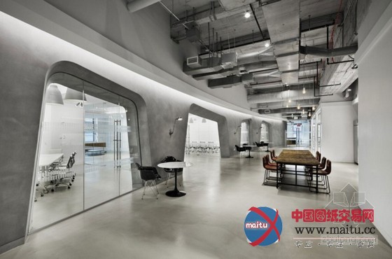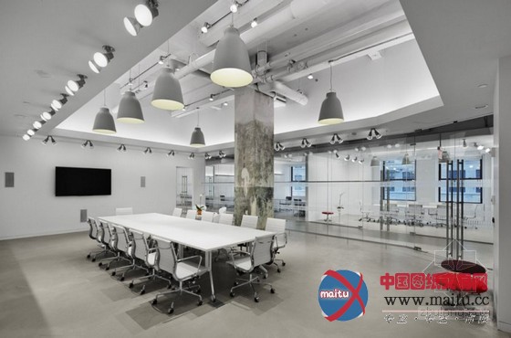 这是Spacesmith建筑事务所早前受聘带领B&Co为喷鼻港利丰有限公司美国分部打造的办公室设计。位于纽约帝国大年夜厦5楼,因为面积高达100000平方英尺,楼层足有17英尺高,是以设计师仿照了Soho Loft的设计气焰,并且以水泥灰和纯白为主调展陈,加上外露的管道钢筋和不加砥砺的承重柱,来营建出结实冷峻的财产气息。当然全部室内极罕用到光鲜色采,但大年夜量灯饰、窗户和落地玻璃的应用为空间带来了充沛的光线与通透感,再配上不法则的特别墙面切割,奇妙点出设计师夸大年夜的原始装潢气焰与设计感。